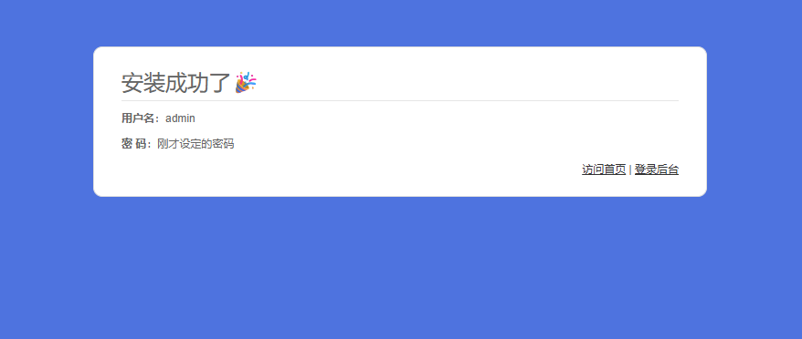 第五步:搭建成功提示后,登录后台进行配置即可