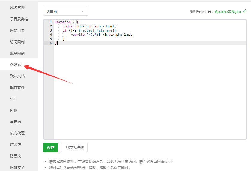 第三步:设置伪静态
